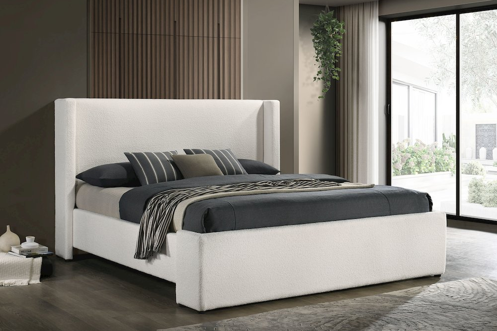 Alamosa White Boucle Upholstered Eastern King Platform Bed
