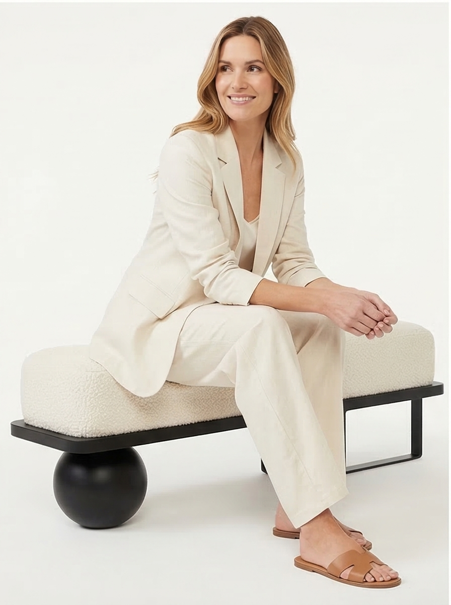With its soft texture and minimalist silhouette, this bench pairs beautifully with neutral palettes, natural wood furniture, and layered fabrics.