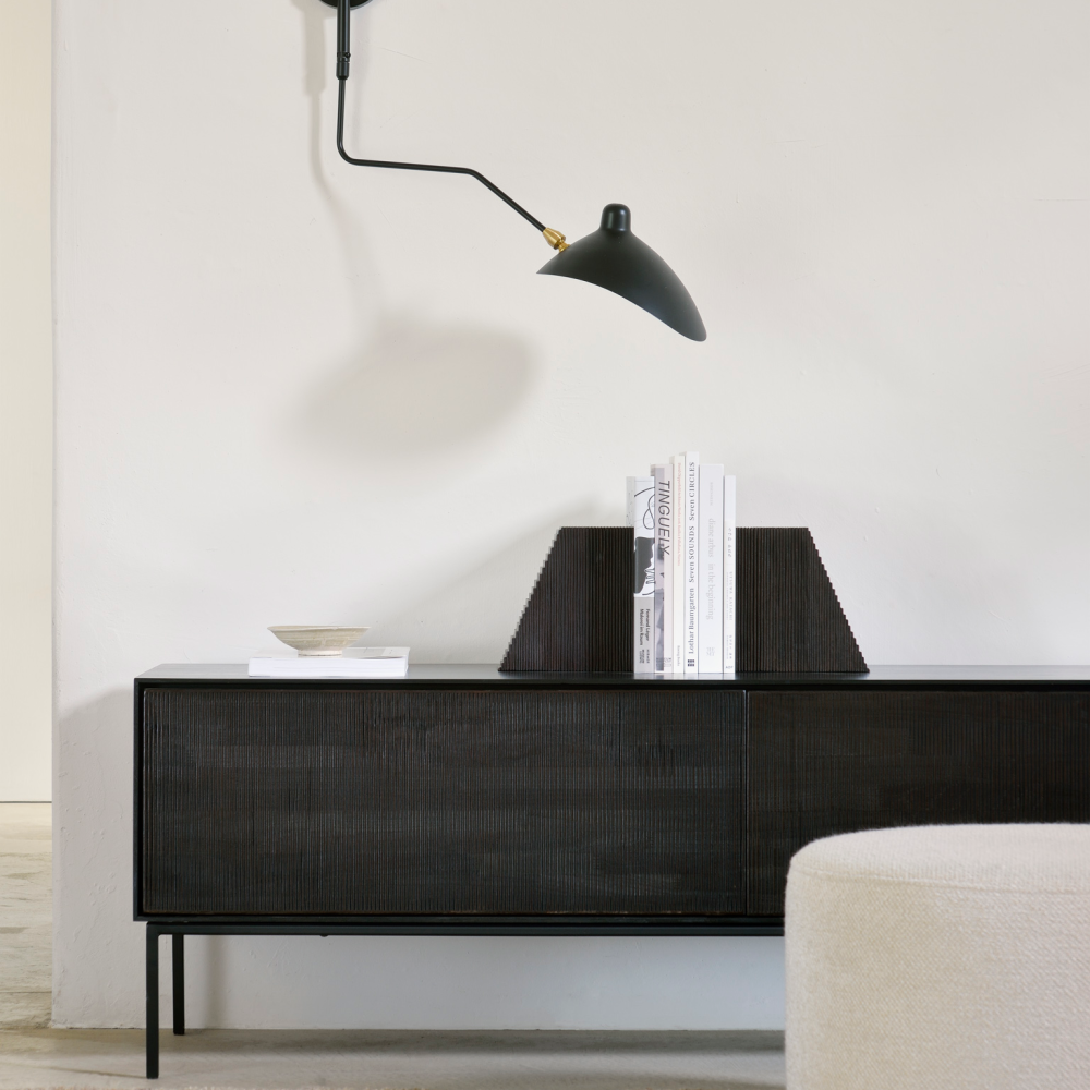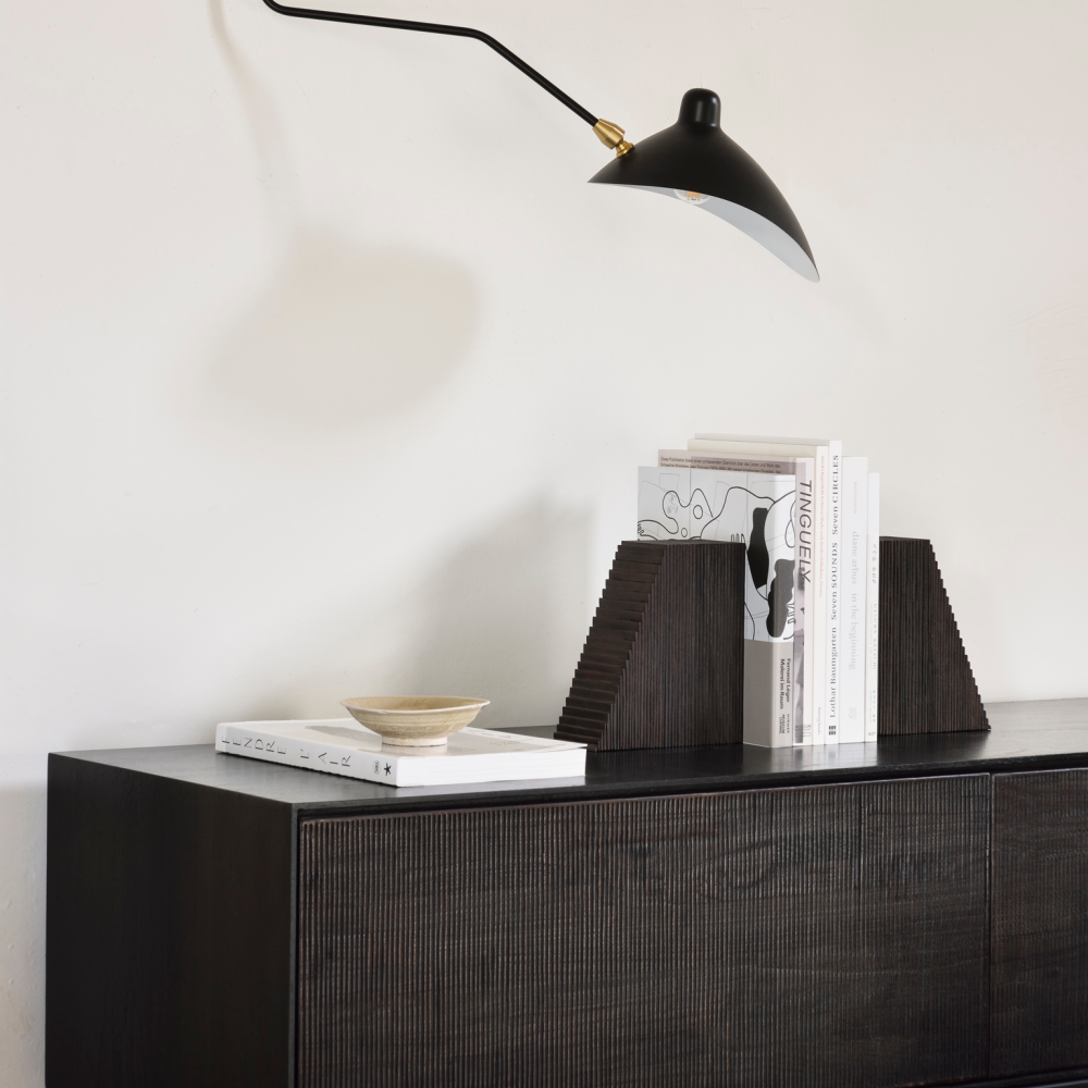 The Varnished Mahogany Book Ends (2) are soulful to say the least. Every single line is hand-carved, making each piece truly unique. Crafted from solid mahogany with a rich dark brown varnish, these Grooves book ends resembles the architectural beauty of a traditional staircase. Whether placed in a modern workspace or accentuating a cozy reading nook, let your favorite books find their place between these modern book ends.