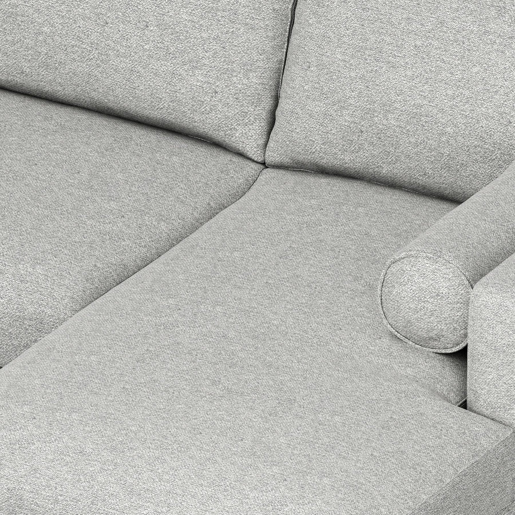 Upholstered in Mist Grey Woven-Blend Fabric, a soft yet durable, eco-friendly polyester-blend fabric made with 56% recycled polyester; this fabric meets both the Global Recycled Standard and OEKO-TEX STANDARD 100.
