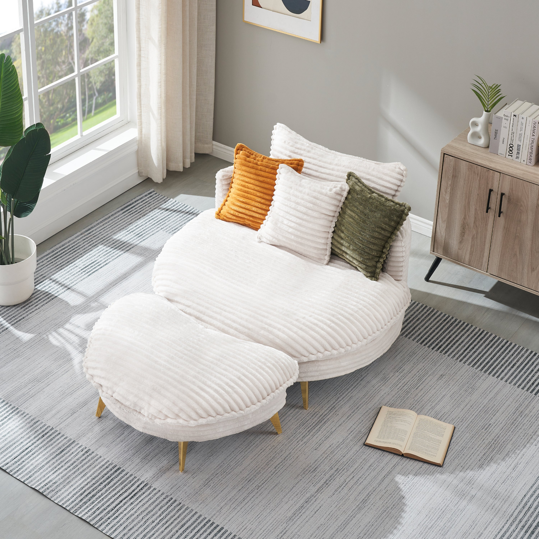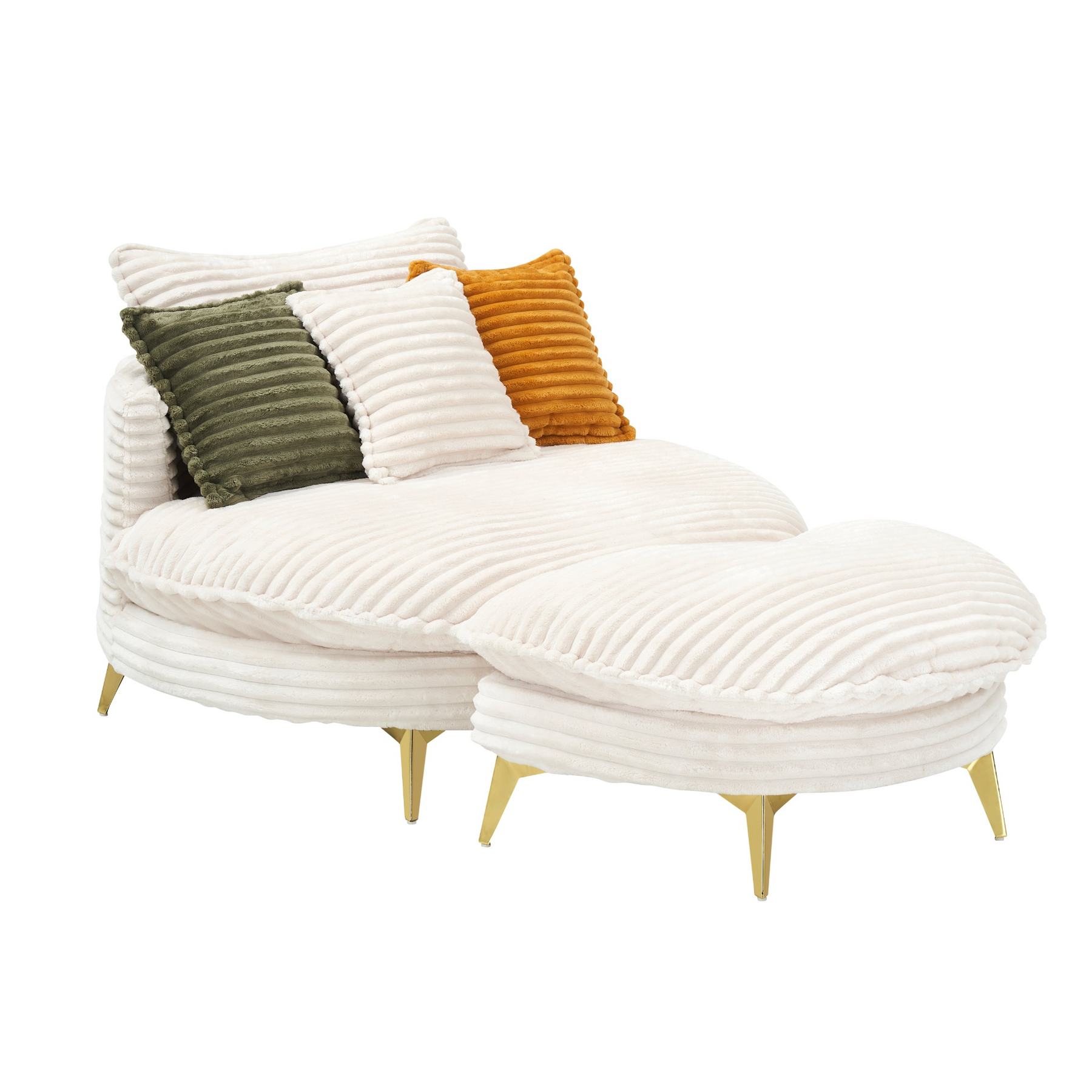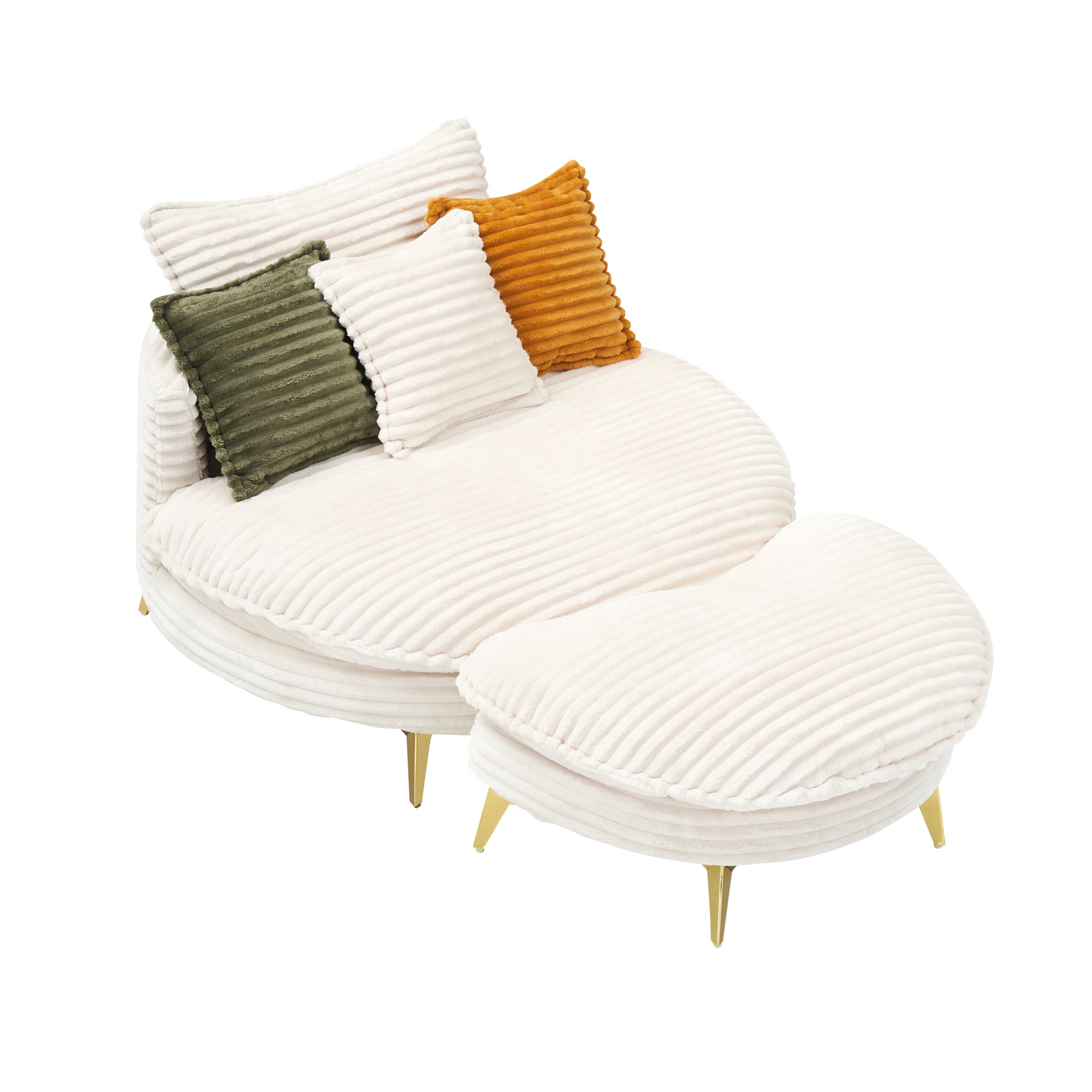 • Corduroy upholstery for a cozy, textured feel