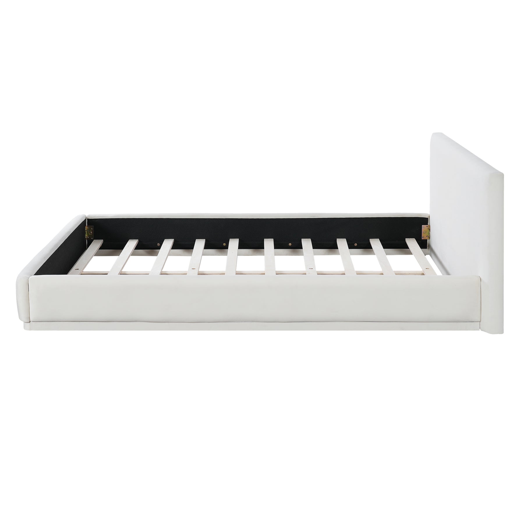 The elegant soft white velvet upholstery and smooth architectural lines make this bed a versatile centerpiece that complements Mediterranean, modern, minimalist, and contemporary bedroom interiors.