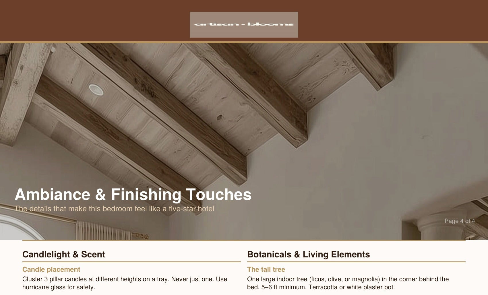 Includes guidance for lighting, materials, and finishes so it translates beyond the photo