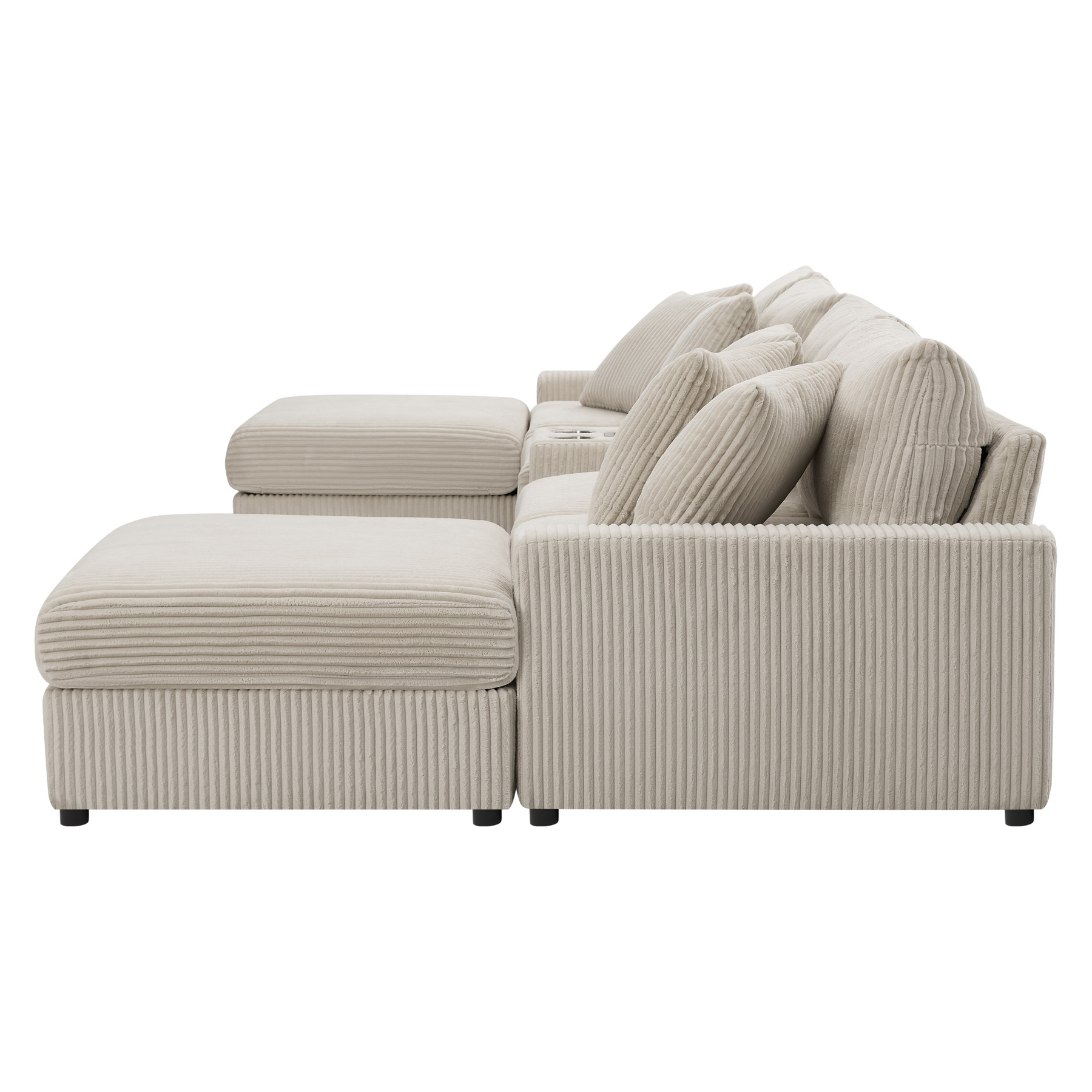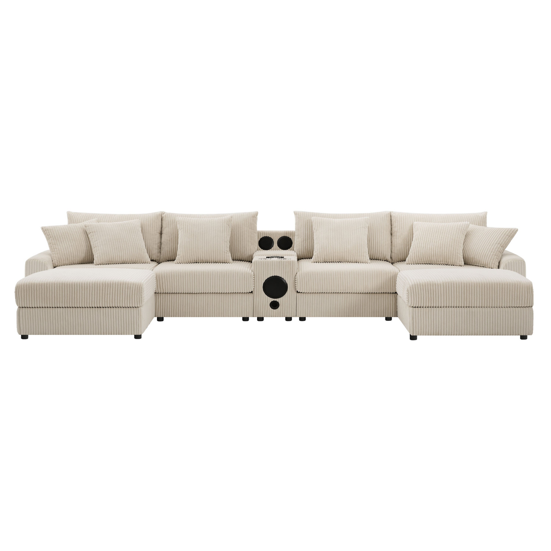 Experience the ultimate in comfort and convenience with our Modular Corduroy Sofa! Designed for modern living, this versatile sofa is packed with features that elevate your relaxation. Enjoy built-in cup holders for your drinks, hidden storage space for your essentials, and Bluetooth speakers for immersive sound. Stay connected with wired and wireless charging ports in the convenient control panel, so your devices are always powered. The movable ottoman lets you adjust your lounging experience, while the generous 30-inch seat width offers plenty of room to stretch out. With its customizable modular design, this sofa is as adaptable as your lifestyle, making it the perfect fit for any home. Indulge in style, comfort, and functionality with our premium corduroy sofa today!