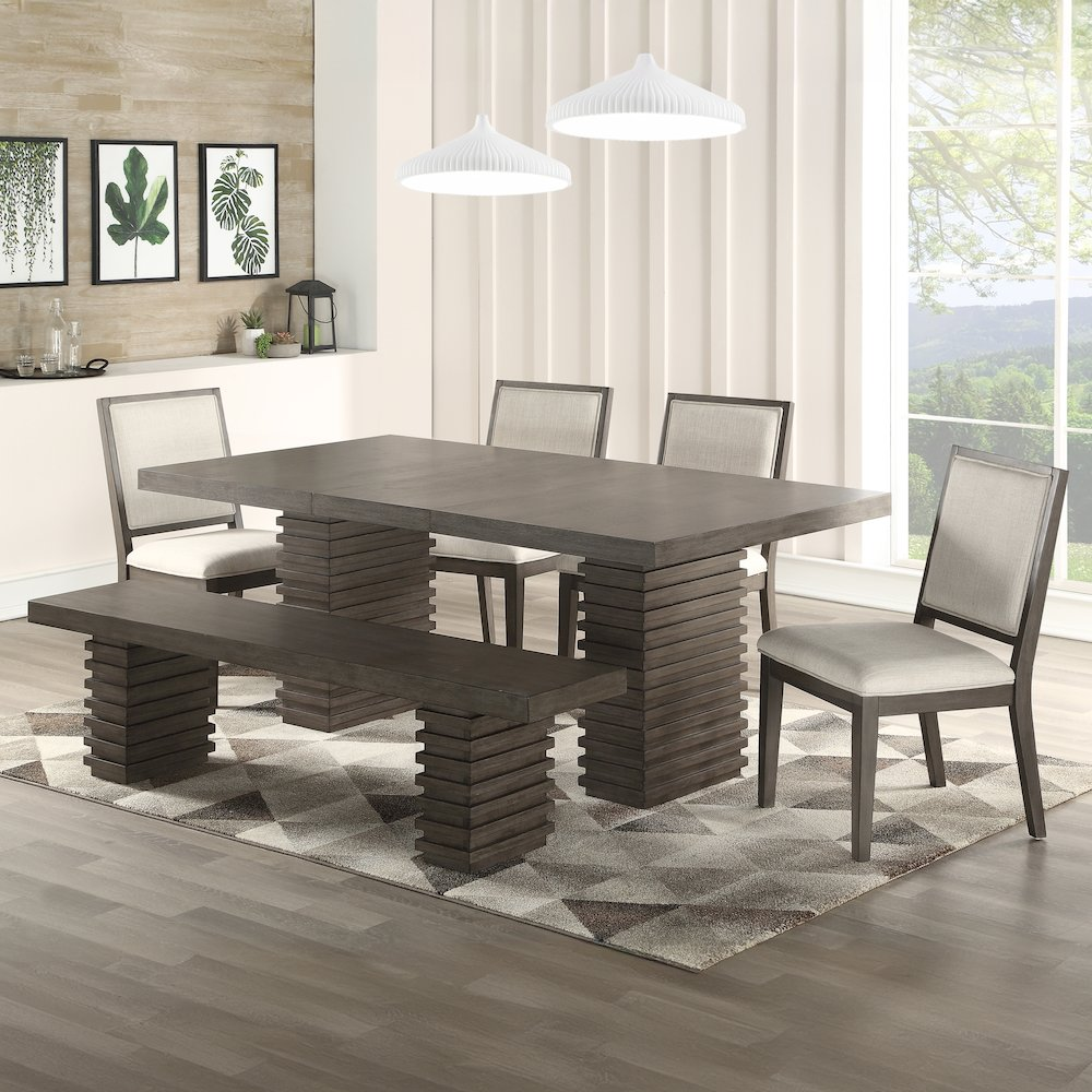 Mila Dining Table - Modern Trestle Base, Washed Grey Finish, Extendable to 78" with 18" Leaf