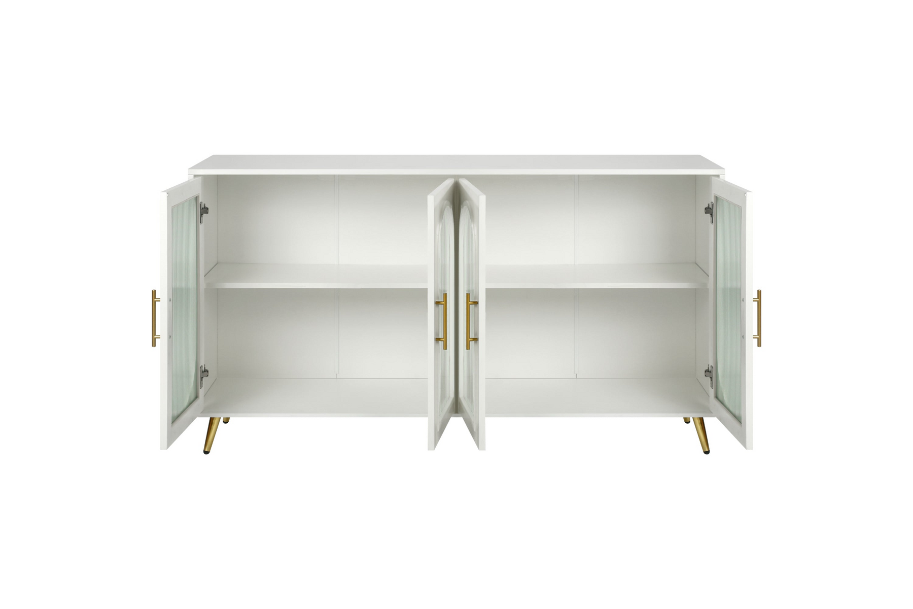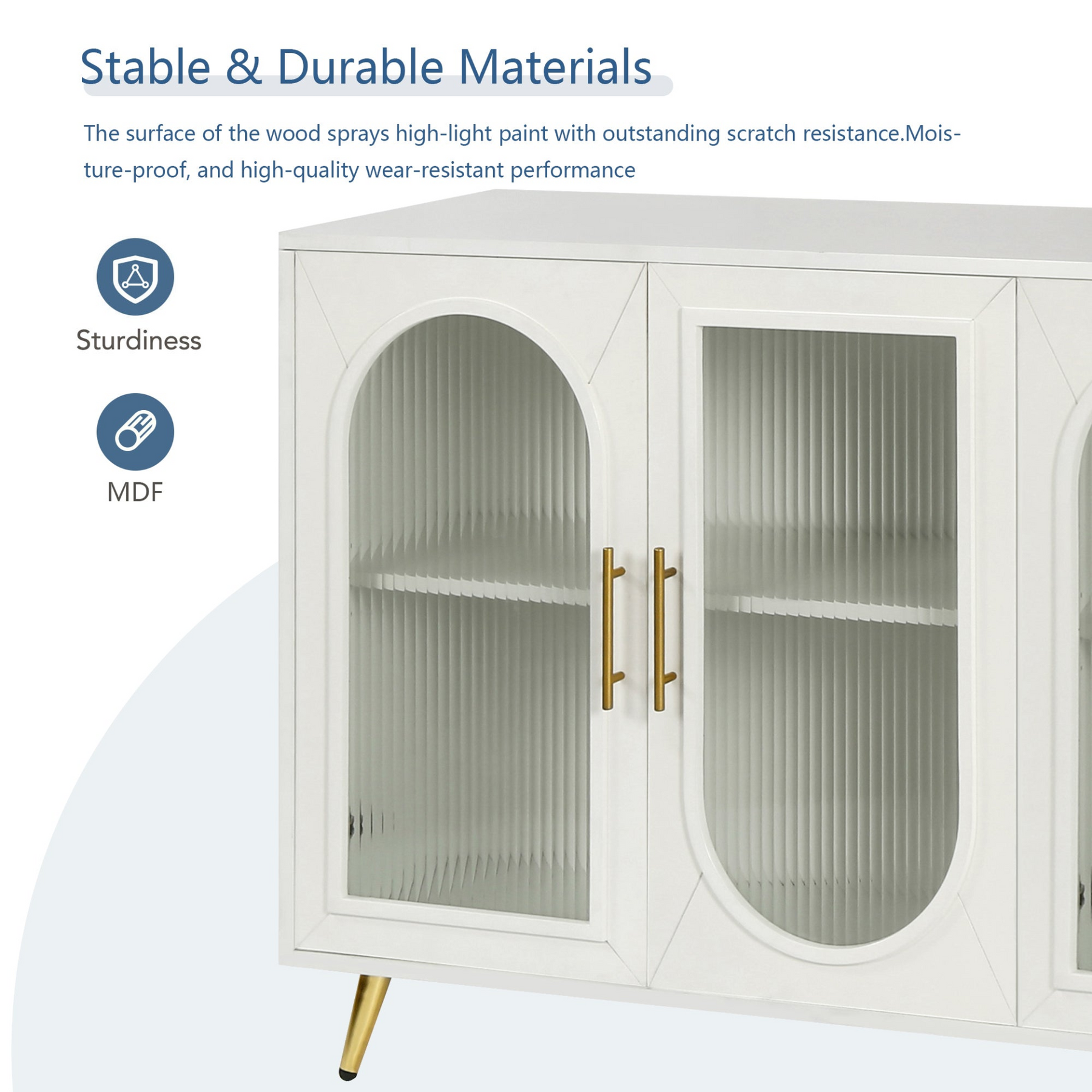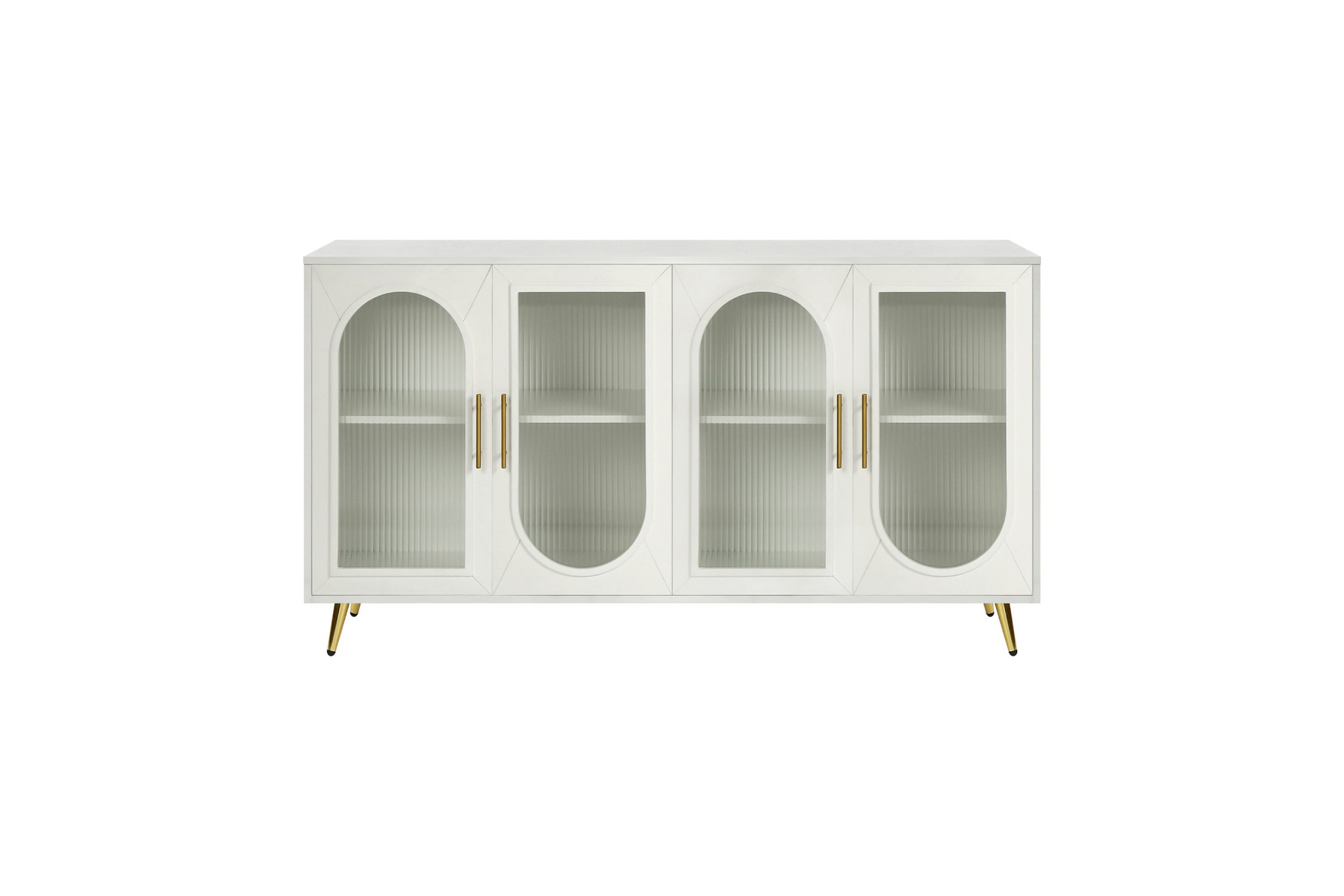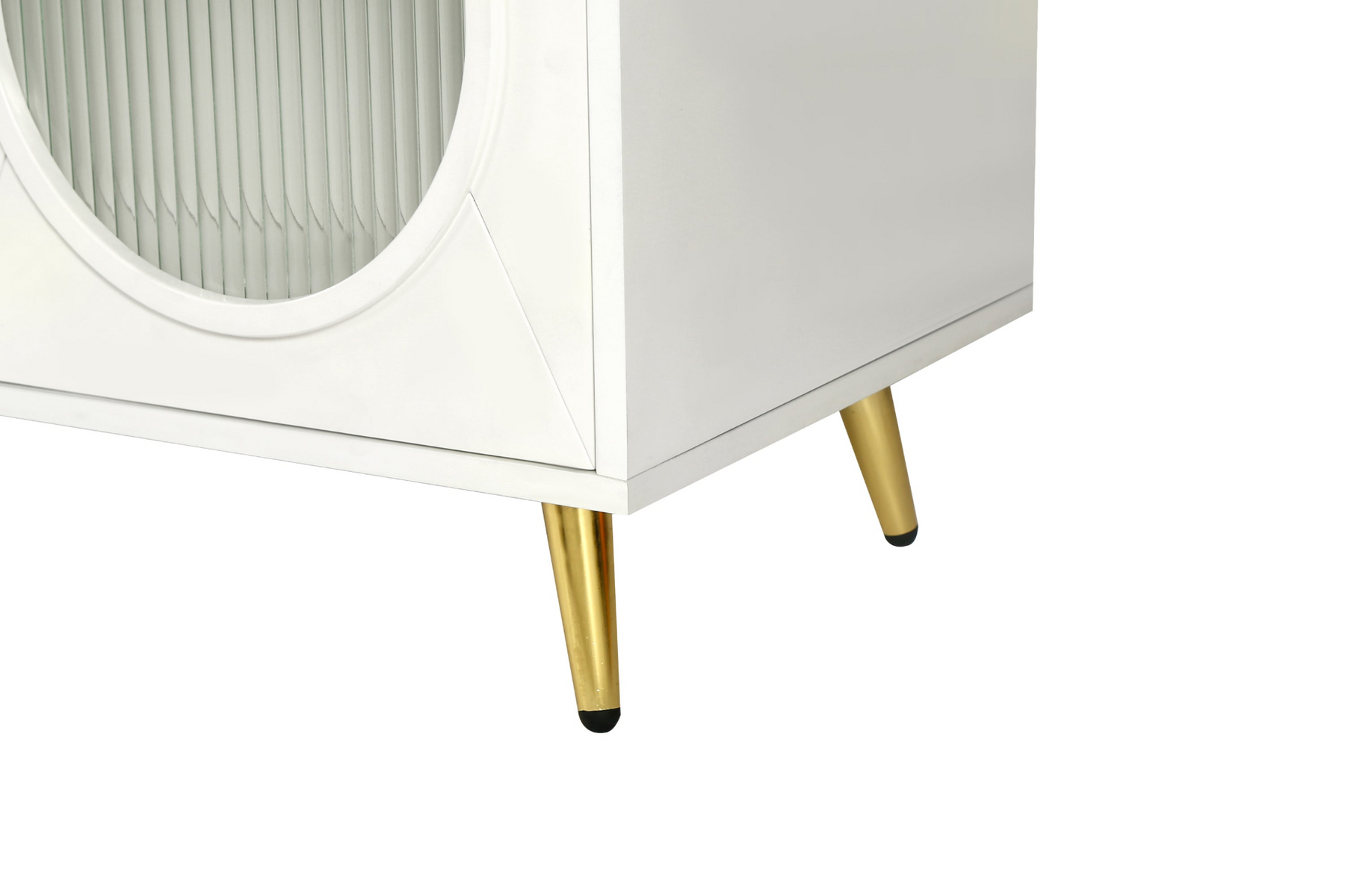 Elevate your entertainment area with a versatile TV stand and storage sideboard designed to support large TVs while keeping your space tidy. Crafted from durable MDF with glass doors, this media console blends everyday function with a refined look—ideal for the living room, bedroom, hallway, or as an accent storage cabinet. Behind the decorative glass doors, adjustable shelves offer flexible organization for consoles, routers, books, dishes, or linens. The textured, privacy-friendly glass effect helps keep contents subtly concealed while still adding depth and style. A smooth, easy-clean painted finish keeps the top looking fresh—simply wipe with a soft cloth. Built for stability and long-term use, this entertainment center features practical cabinet storage and a clean silhouette that complements modern, vintage-inspired, and transitional interiors. Simple assembly is supported with clear instructions, so you can set up your new TV console quickly and enjoy a more organized home.