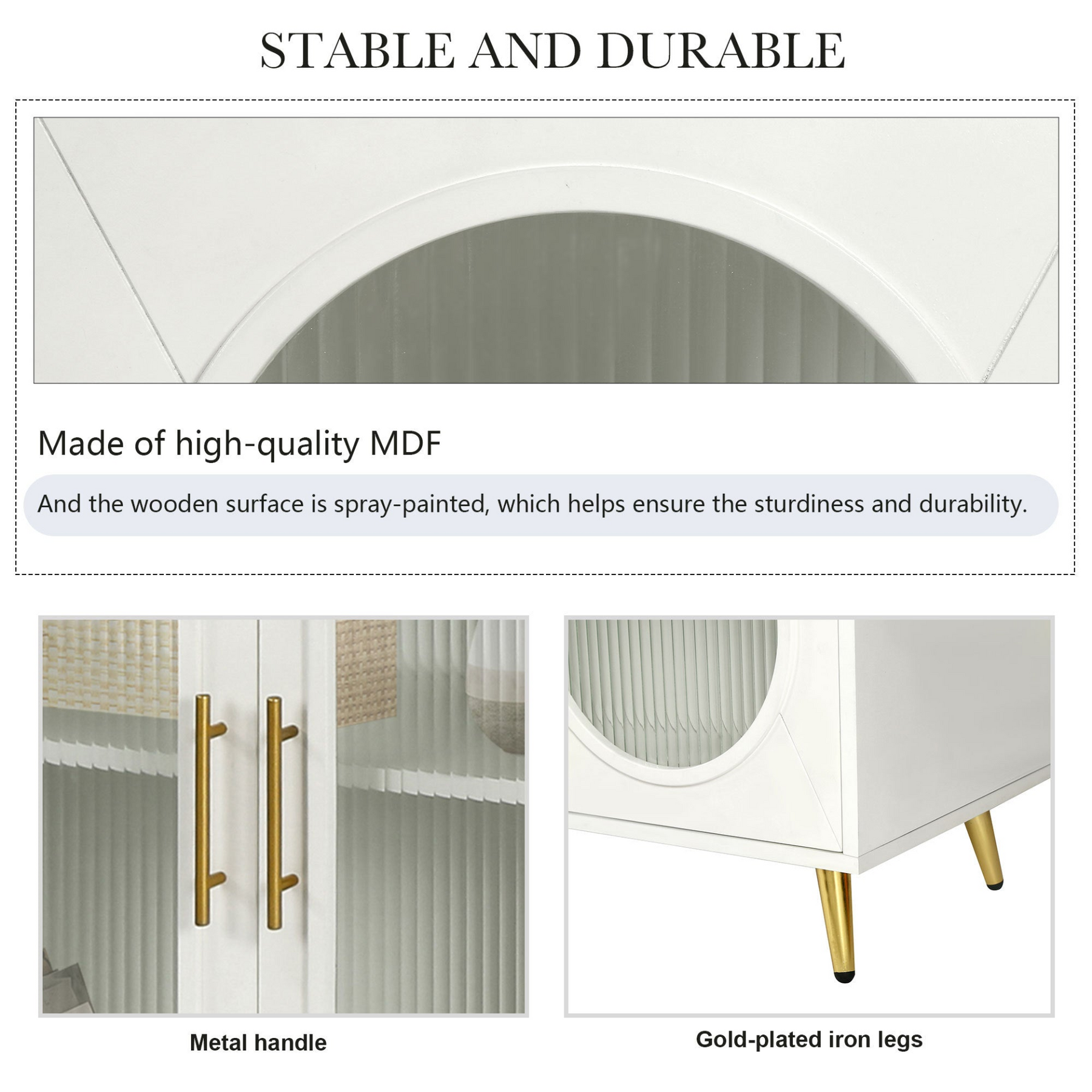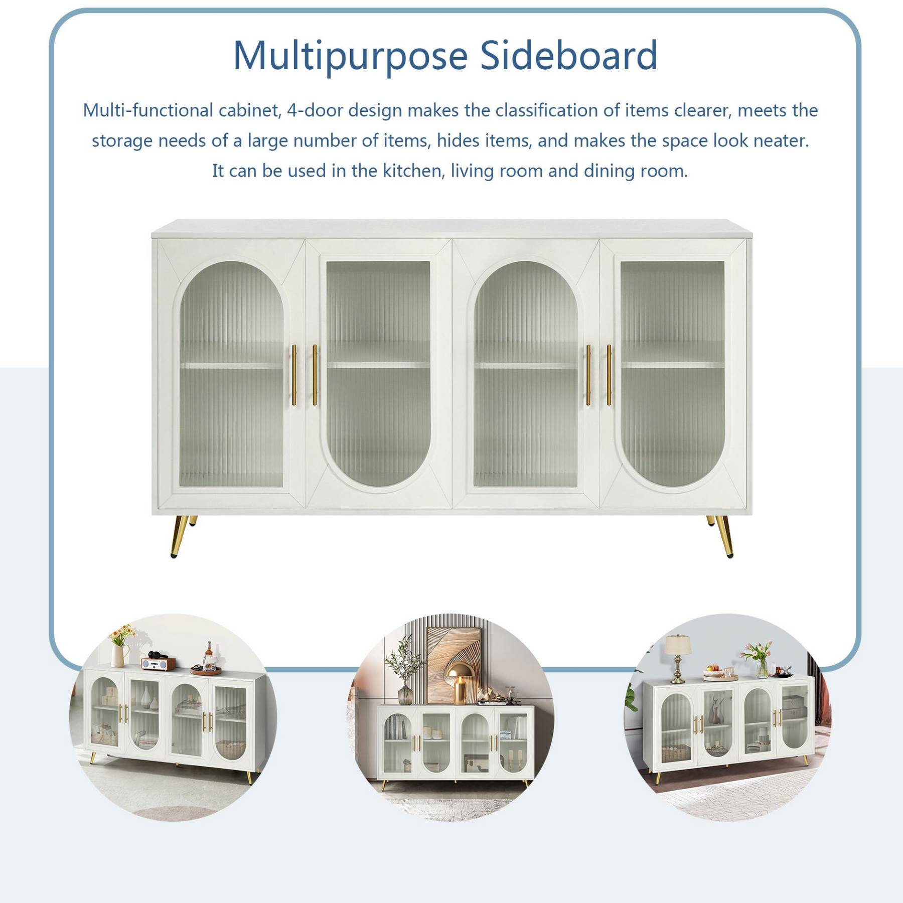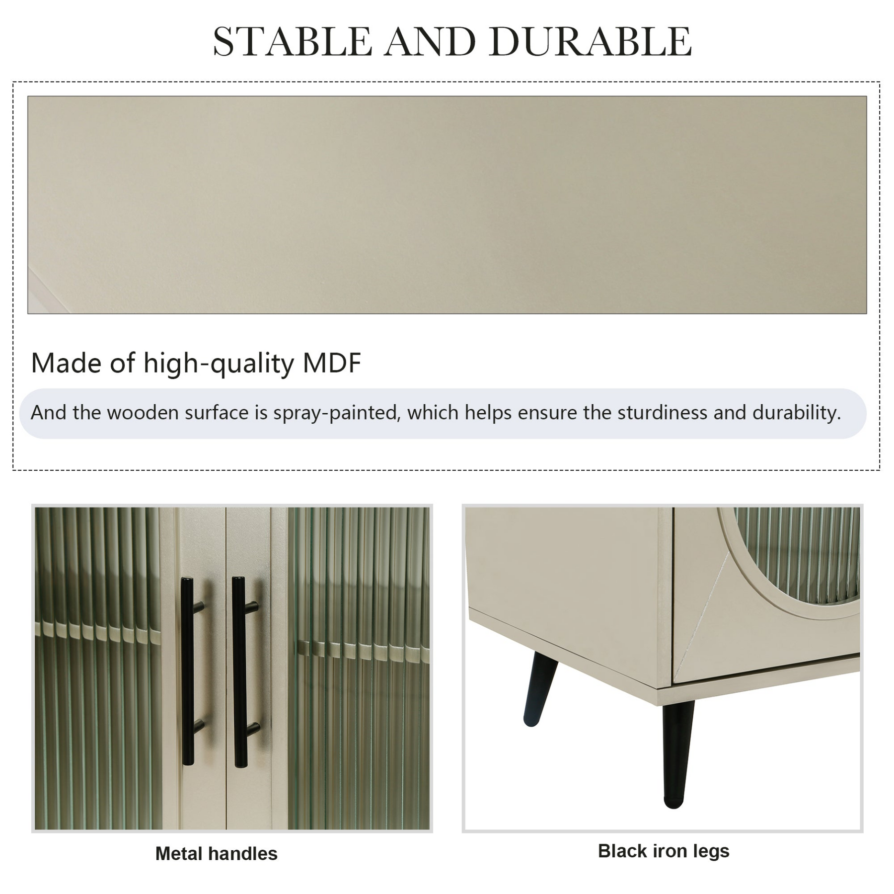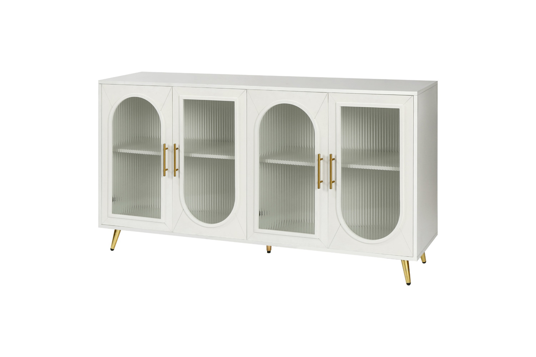 Elevate your entertainment area with a versatile TV stand and storage sideboard designed to support large TVs while keeping your space tidy. Crafted from durable MDF with glass doors, this media console blends everyday function with a refined look—ideal for the living room, bedroom, hallway, or as an accent storage cabinet. Behind the decorative glass doors, adjustable shelves offer flexible organization for consoles, routers, books, dishes, or linens. The textured, privacy-friendly glass effect helps keep contents subtly concealed while still adding depth and style. A smooth, easy-clean painted finish keeps the top looking fresh—simply wipe with a soft cloth. Built for stability and long-term use, this entertainment center features practical cabinet storage and a clean silhouette that complements modern, vintage-inspired, and transitional interiors. Simple assembly is supported with clear instructions, so you can set up your new TV console quickly and enjoy a more organized home.