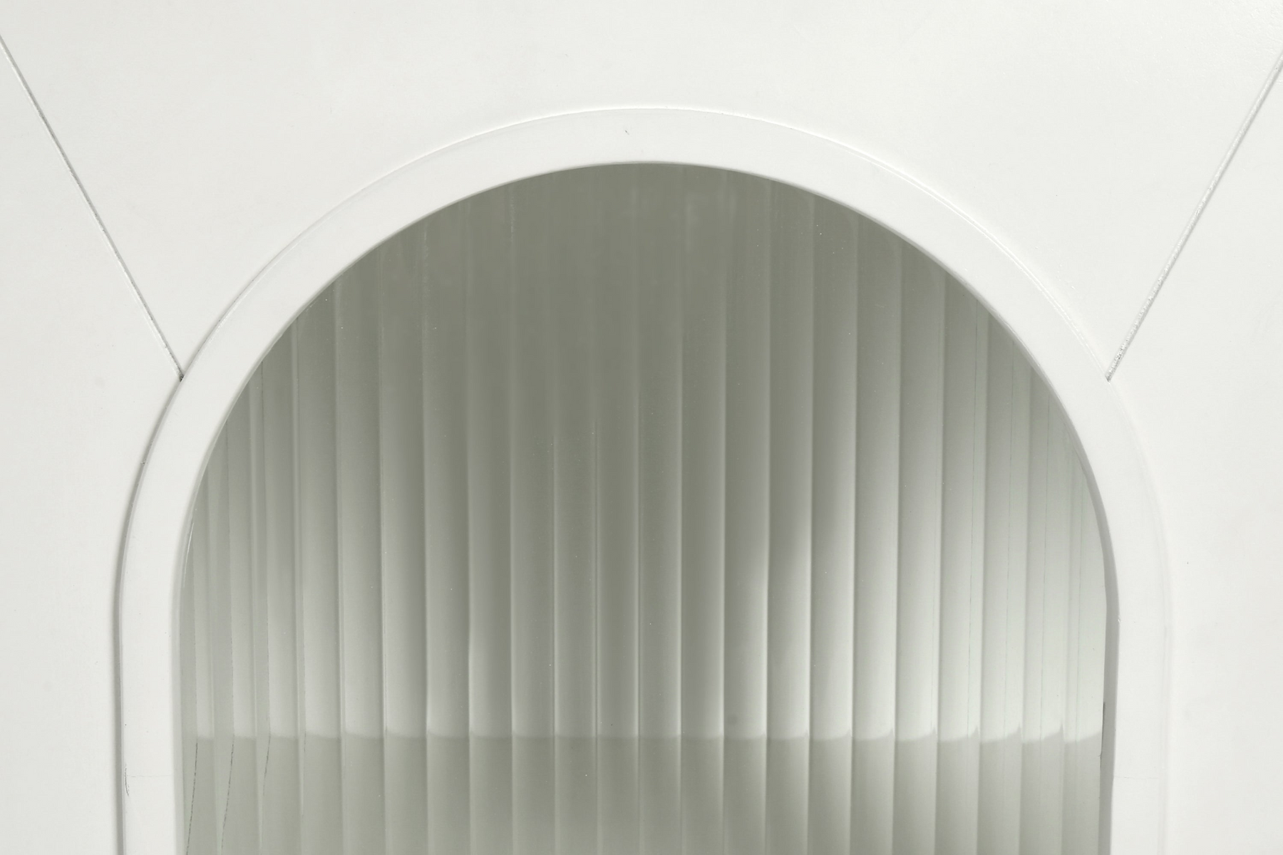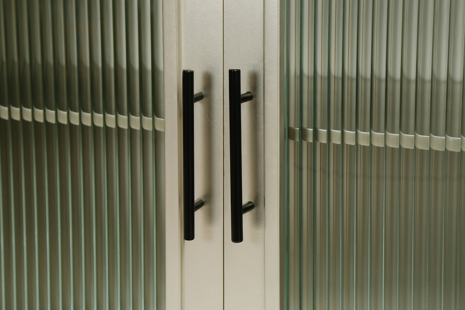 • Decorative textured glass doors provide a soft, blurred display effect and added privacy.