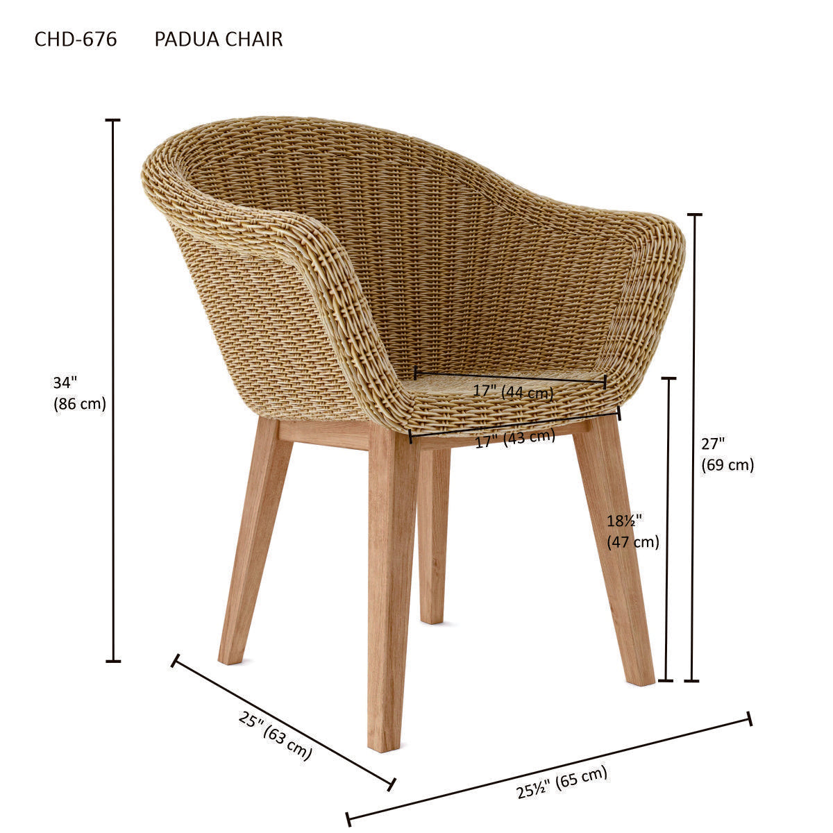 The Padua Chair – Built of Synthetic Wicker and a Teak Wood Base that comes in seven color options: Dark Brown, Light Brown, Espresso, Black, Red, Yellow, & White. Synthetic Wicker and Authentic Teak Wood ensures outdoor fitness and quality that lasts generations.