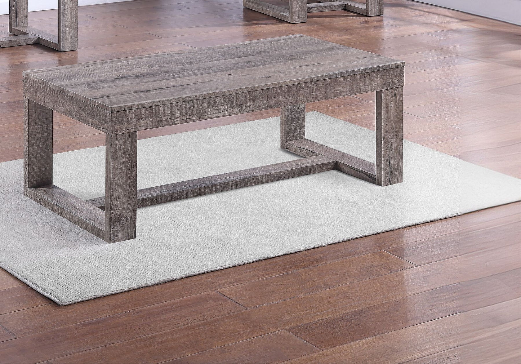 Description: This coffee table combines rustic charm with modern design. Its sturdy construction and unique aesthetic make it a perfect centerpiece for any living room, adding both functionality and style.