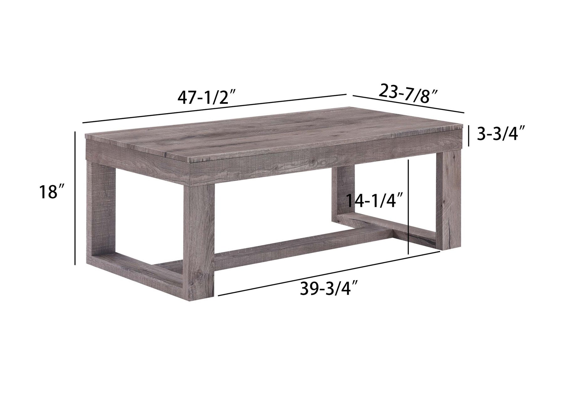 Product Dimensions: Coffee Table : 47.5" X 23.9" X 18"H