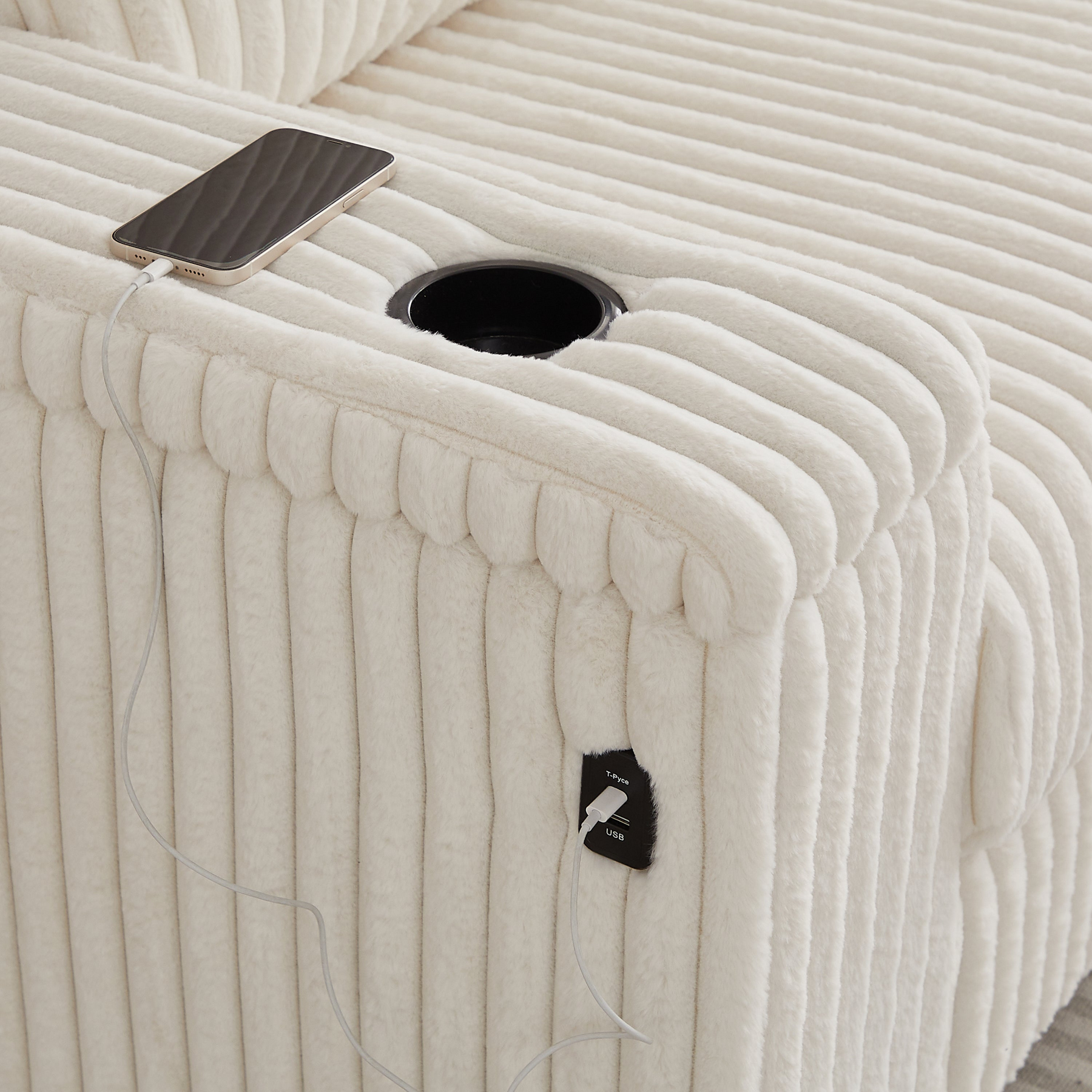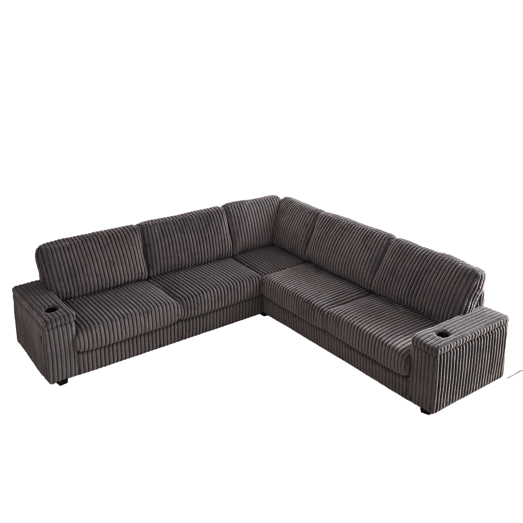 超大灯芯绒L形转角沙发,带储物、USB接口和杯架